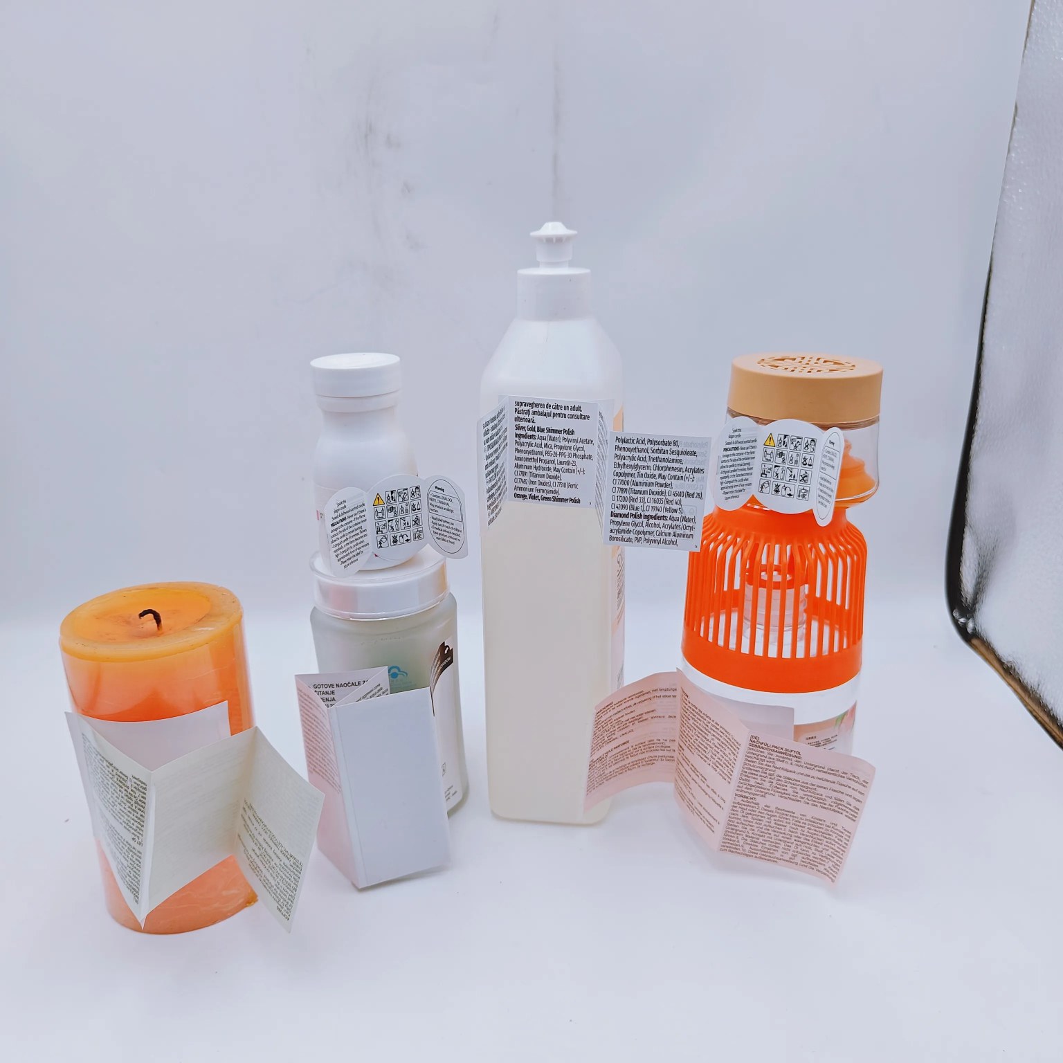त्यस्ता लेबलहरूको मुख्य फाइदा तिनीहरूको बहु-तह संरचनामा छ, जसले सूचना भण्डारणको लागि पर्याप्त ठाउँ प्रदान गर्दछ, उत्पादन जानकारीको ठूलो मात्रालाई कम्प्याक्ट लेबलमा केन्द्रित गर्न सक्षम बनाउँछ। धेरै डिजाइनहरूले बारम्बार खोल्ने र टाँस्ने समर्थन गर्दछ।