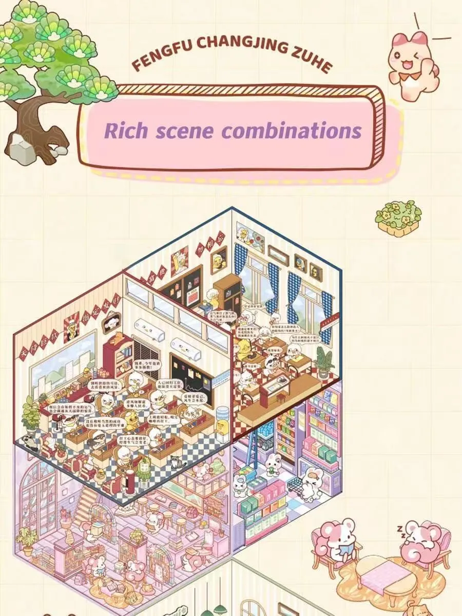 यो लघु दृश्य स्टिकर पुस्तकमा विभिन्न शैलीहरू समेटेर प्रत्येक भोल्युममा १० फरक विषयवस्तुका दृश्यहरू समावेश छन्। यसले तनाव राहत, मनोरञ्जन, बौद्धिक विकास, र सजावट कार्यहरू संयोजन गर्दछ, यसलाई बालबालिका, किशोर र युवा वयस्कहरूको लागि उपयुक्त बनाउँछ। यो दैनिक फुर्सद, अभिभावक-बच्चा अन्तरक्रिया, र चाडपर्वहरूको लागि उपहारको रूपमा उत्कृष्ट छनोट हो।