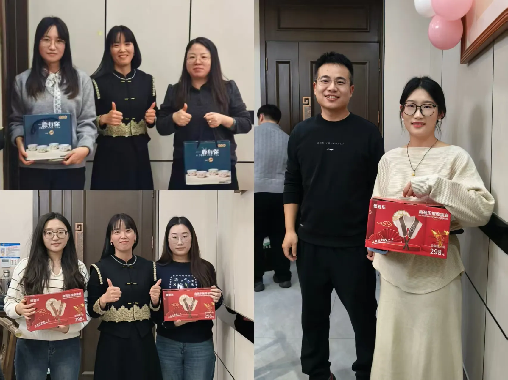 लंचको समयमा, त्यहाँ दुई हृदयस्पर्शी हाइलाइटहरू थिए। सर्वप्रथम, हाम्रो हाकिमले हाम्रो कडा परिश्रम गर्ने बिक्री टोलीका सदस्यहरूलाई उनीहरूको उत्कृष्ट प्रदर्शनको पहिचान गर्न विशेष पुरस्कारहरू प्रदान गरे। पछि, प्रबन्धक गाओले चार जना कर्मचारीहरूका लागि मीठो सरप्राइज दिए जसको जन्मदिन नजिक थियो। उनले उनीहरूका लागि जन्मदिनको केक र परम्परागत दीर्घायु चाउचाउ तयार गरे। यस प्रकारको इशाराले जन्मदिनका कर्मचारीहरू र अरू सबैलाई साँच्चै मूल्यवान र खुशी महसुस गराए।