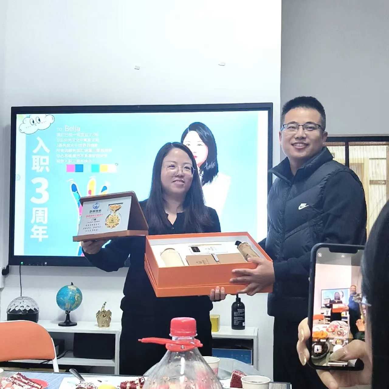 अचम्मको आश्चर्यको रूपमा, मालिक गाओले व्यक्तिगत रूपमा टम र एला र प्रबन्धक बेलालाई सुन्दर कामको वार्षिकोत्सव उपहारहरू पनि प्रस्तुत गरे। यी विशेष टोकनहरू विगतका वर्षहरूमा उनीहरूको योगदानको इमानदार स्वीकृति हुन् र कम्पनीसँग उनीहरूको निरन्तर वृद्धिको लागि हाम्रो शुभकामनाहरू बोक्छन्।