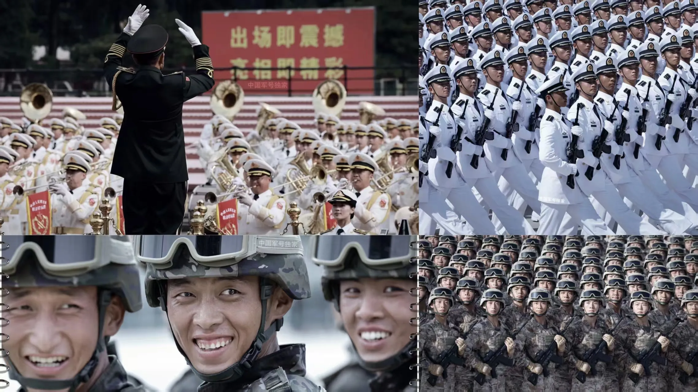 टेनियनमेन स्क्वायरमा 45 45 निर्माण र ईन्चनहरू अनुक्रममा बित्दै गए, र एक संयुक्त सैनिक ब्यान्डले एक हजार अधिकारी र सैनिकहरू युगको शक्तिशाली आवाजहरू खेले।