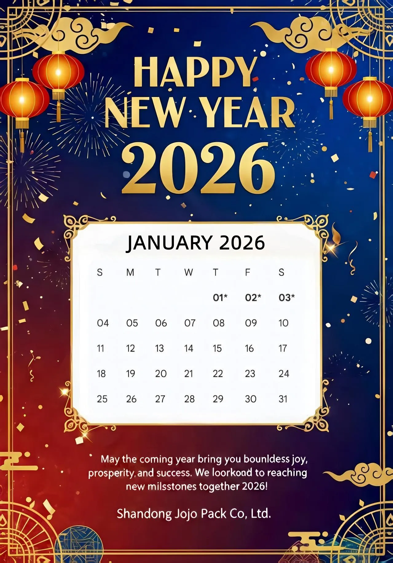 नयाँ वर्ष 2026 नजिकिँदै गर्दा, हामी एक पेशेवर चिनियाँ स्टिकर निर्माता हाम्रो कम्पनीलाई सबै ग्राहकहरूको निरन्तर विश्वास र समर्थनको लागि हार्दिक कृतज्ञता व्यक्त गर्न चाहन्छौं। चीनको राष्ट्रिय बिदा नियमहरू अनुसार, हामी तपाईंलाई पहिले नै उचित व्यापार योजनाहरू बनाउन मद्दत गर्नको लागि निम्नानुसार हाम्रो नयाँ वर्षको दिन बिदाको व्यवस्थाको घोषणा गर्छौं।