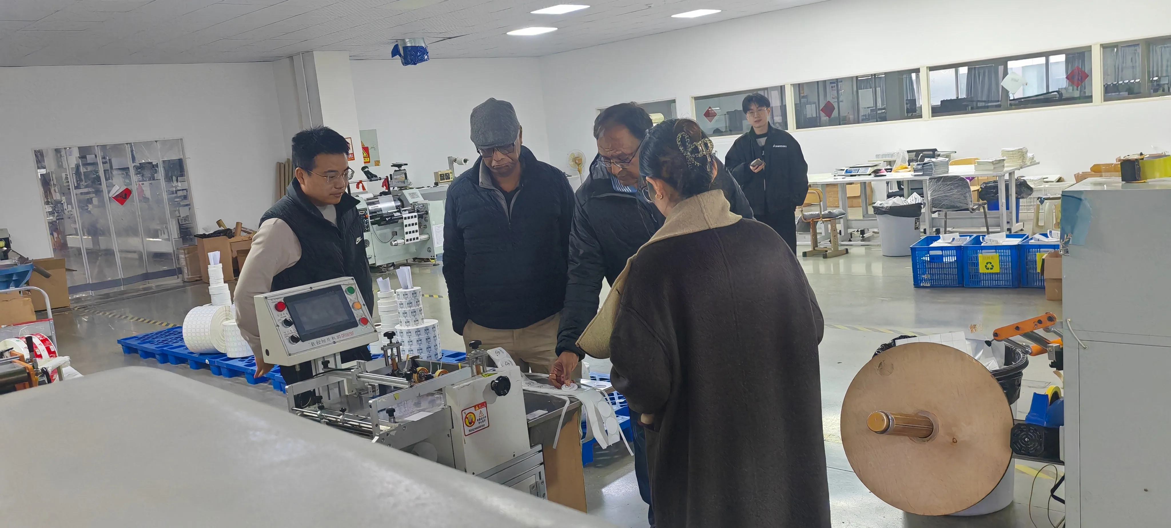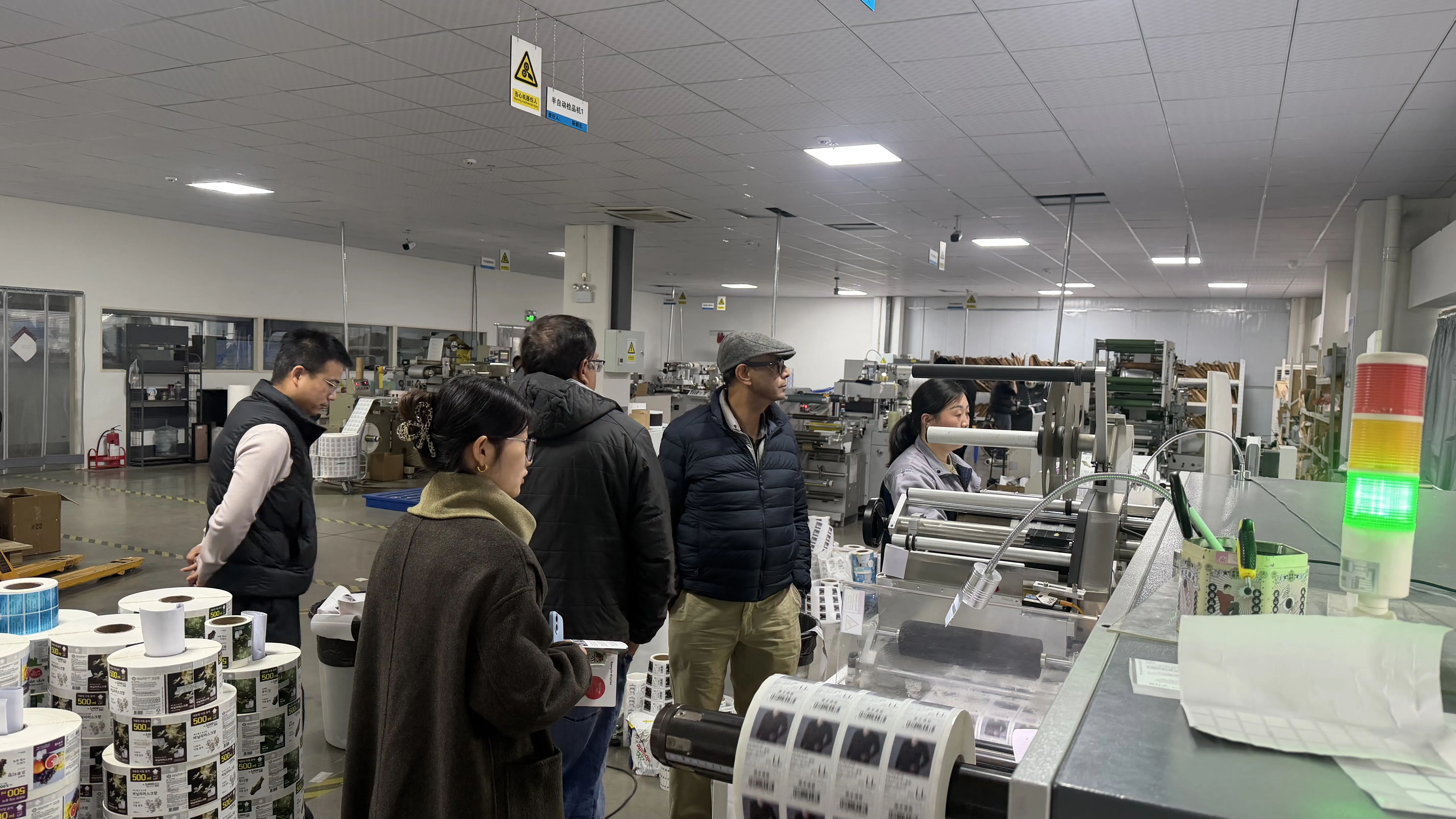 भ्रमणको क्रममा, कम्पनीका नेताहरू र सम्बन्धित विभागका प्रमुखहरूका साथमा, भारतीय ग्राहक समूहले क्रमशः हाम्रो कम्पनीको मुख्य क्षेत्रहरू जस्तै उत्पादन कार्यशाला, गुणस्तर निरीक्षण केन्द्र र कच्चा माल गोदामहरूमा गहिरो गएर प्याकेजिङ लेबलहरूको सम्पूर्ण प्रक्रियालाई कच्चा माल छनोट, सटीक प्रिन्टिङ, डाइ-काटिङ उत्पादनको निर्माणसम्मको निरीक्षण गरे।